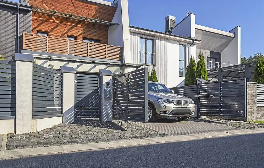 При выборе важно учитывать рельеф, частоту использования и будущий стиль ограждения. Хорошо, когда решения для въезда гармонируют друг с другом и общим дизайном дома — например, гаражными воротами, оконно-дверными системами, внешней солнцезащитой.