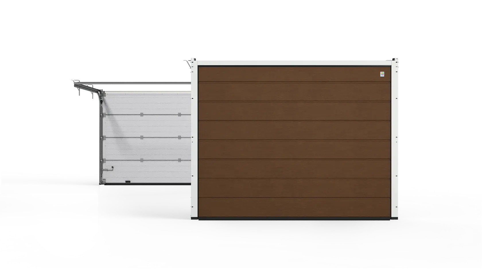 S-гофр, woodgrain, RAL8017 (шоколадный), с ручным управлением, пружины растяжения, подвес CS-2 (500 мм)