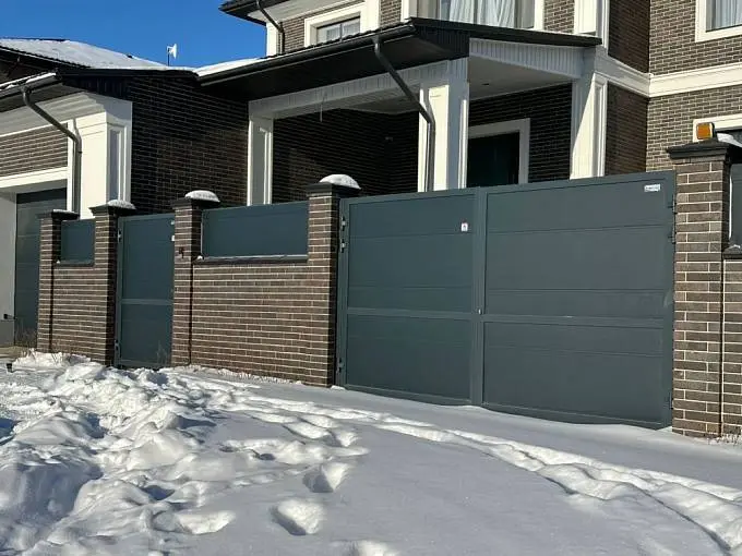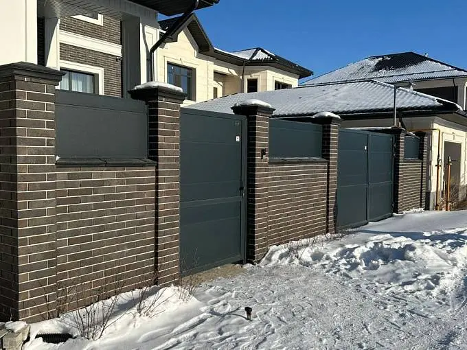 Недавно установили откатные ворота с калиткой и секциями ограждения, и это одно из лучших решений для нашего дома в Алматы. Всё выглядит невероятно гармонично: ворота, калитка и ограждение идеально сочетаются между собой и полностью попадают в стиль фасада.