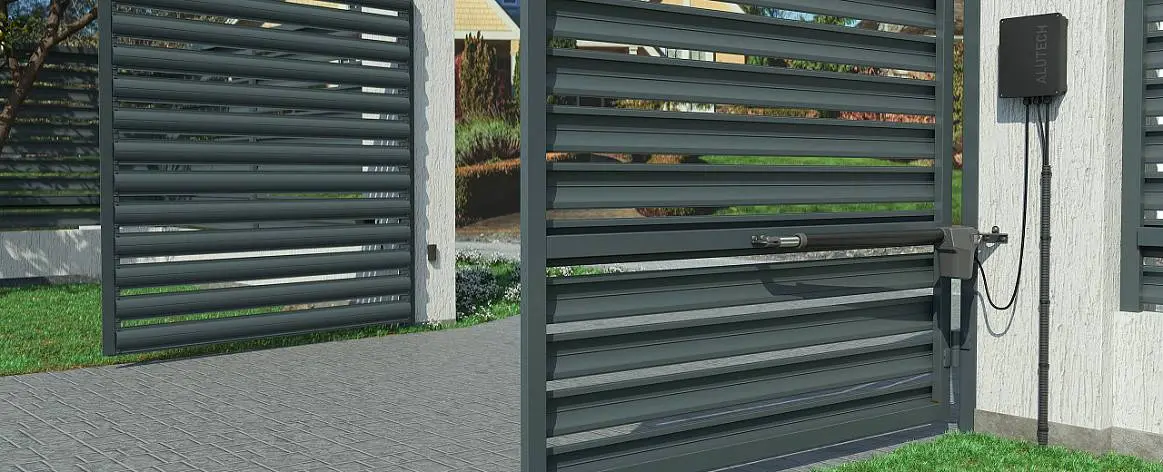 Распашные ворота и калитки серии Prestige могут открываться в двух направлениях: внутрь (встроенный и накладной монтаж) и наружу (встроенный монтаж).